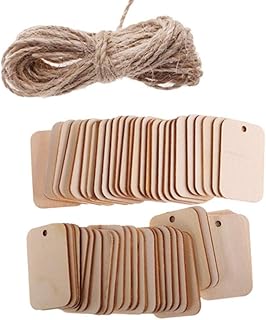 ForuMall 50pcs Wooden Rectangle Craft Shape Tag Embellishment for Craft with Rope