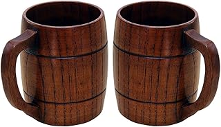 Sanmum Rétro Chope à Bière en Bois Vin Tasse à Boisson Lait Café en Bois Cadeau avec Poignée Tasse en Bois Cadeau Fête Noël (2pcs)