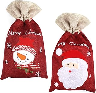 Yangfei 2pcs Sac De Cadeau Noël, Sac De Père Noël Sacs d'emballage De Cadeaux De Noël Sacs De Noël avec Cordon De Serrage Sac Cadeau Noël Grand Format pour Cadeau De Noël Décorations Fête (24 * 40cm)