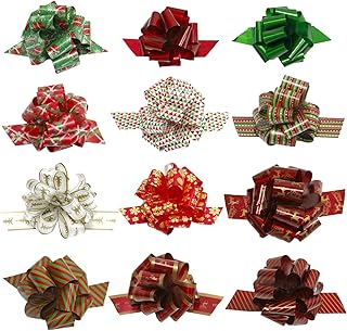 LABOTA 12 Pièces de Noël Ruban de Papier Cadeau Nœuds à Tirer, Facile et Rapide Cadeau Accessoire pour Cadeau de Noël Emballage Cadeau, décorations de Noël, Fleuriste