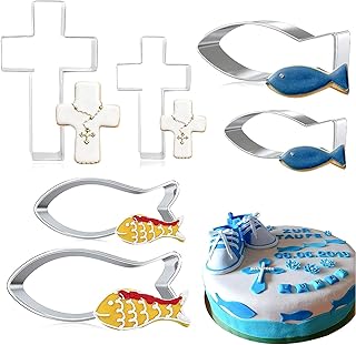 WELLXUNK®Emporte Piece Pâques, Ensemble de Emporte Pièces, 6 pcs Emporte-pièce en forme de Poisson en Acier Inoxydable, Coupe biscuit Emporte pièces Croix pour baptême, communion