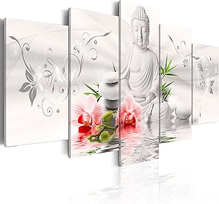 murando Impression sur Toile intissee 100x50 cm 5 Parties Tableau Tableaux Decoration Murale Photo Image Artistique Photographie Graphique Buddha Abstrait Fleurs lis h-C-0043-b-n