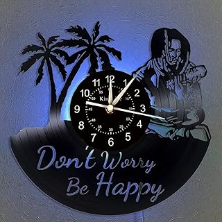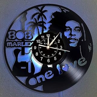 Cheemy Joint Horloge Murale de Disque Vinyle Bob Marley - Bob Marley LED Light 12'Vinyle CD Horloge à Quartz - One Love Art décor Minimaliste pour Le Salon - Horloge Murale Lumineuse 7 Couleurs.