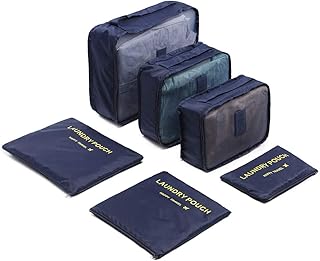 Organiseurs de Bagage 6 PCS Voyage Essentiel Sacs-dans-Sac Cubes d'emballage Durable Voyage Organiseurs De Bagages Valise Sacs De Rangement Sacs À Compression (Marine)