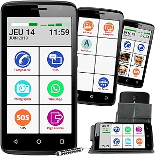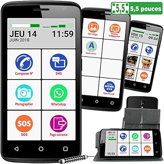 Mobiho-Essentiel Le SMART INITIAL 5,5 pouces, interface senior simplifiée pour faire l’essentiel - Coach privé inclus, guide, aide +pochette, app photo 8 Mp dos et 2 Mp recto - Débloqué tout opérateur