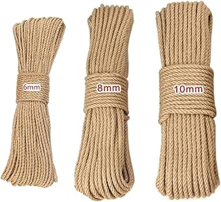 Corde de Jute Naturelle Sisal Corde Ficelle de Jute à 4 Couches Épaisseur - 6mm, 8mm, 10mm Mariage Décoration Maison Décoration Jardin Animaux Compagnie Corde 30mètres (10 mètres dans Chaque Taille)