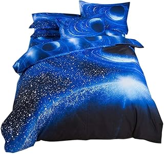 Anwind Parure de lit 3D Galaxie Univers Stellaire Étoile Ciel étoilé de Modèle Housse de Couette Taies d'oreiller (Bleu, 140x200cm)