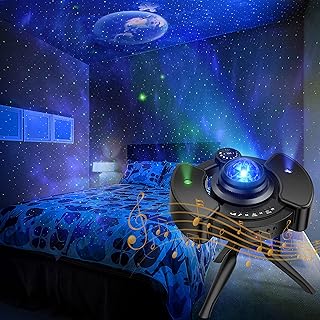 Projecteur Ciel Etoile, Lumiere Galaxie Plafond, Veilleuse Enfant Rotatif Réglable LED Etoile, avec Haut-Parleur Bluetooth, Télécommande, pour Chambre, Enfants, Fête, Décoration, Halloween Cadeau