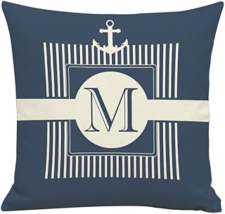 BIGBOBA Lin Housse de coussin Sofa Lettre M Modèle doux dekorativ Coussin Sofa Bleu Housse de coussin 45 x 45 cm