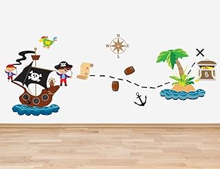 Lot de 13 Pirate Sticker mural pour chambre de garçon Motif bateau Pirate stickers en forme de coffre à trésor Pirate île déserte