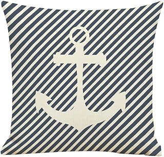 Bigboba Housse de coussin en lin Motif pirate et ancre Bleu et blanc 45 x 45 cm