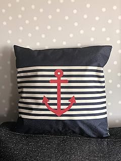 J.T.Hatched Housse de coussin motif ancre de bateau rouge, bleu marine, nautique