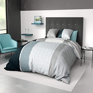 Housse de Couette avec taie d'oreiller – Parure de lit 100% Percale de Coton 71 Fils Belize : Taille au Choix - Housse de Couette 2 Personnes 240x260 cm + 2 taies d’Oreiller