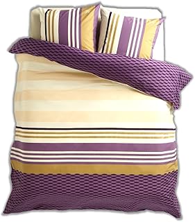 Générique Parure de Lit 2 Personnes 100% Coton Percale 80 Fils Finition Bouton Housse de Couette 240x220cm avec 2 Taies d'oreillers 65x65cm_n°5 Violette et Parme