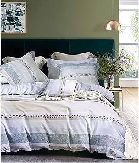 Générique Parure de Lit 2 Personnes 100% Coton Percale 80 Fils Finition Bouton Housse de Couette 240x220cm avec 2 Taies d'oreillers 65x65cm_n°1 Vert et Gris