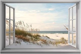 Peinture Diamant Bricolage 5D Plage de fenêtre Plein Diamant Strass Point De Croix Broderie Artisanat Peinture Diamant Kit Pour La Maison Décoration Murale Cadeaus Square Drill 60x45cm G2512
