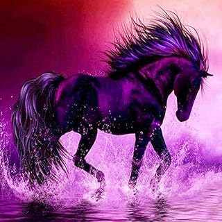 Reofrey Diamond Painting 5D Diamant Peinture Animal Cheval Violet DIY Cristal Strass Peinture Plein Forage Broderie Artisanat Point De Croix Chambre Salon Décoration Murale 40x40cm