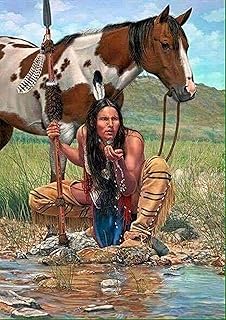 Reofrey Diamond Painting 5D Diamant Peinture Indiens Cheval Lac DIY Cristal Strass Peinture Plein Forage Broderie Artisanat Point De Croix Chambre Salon Décoration Murale 40x50cm