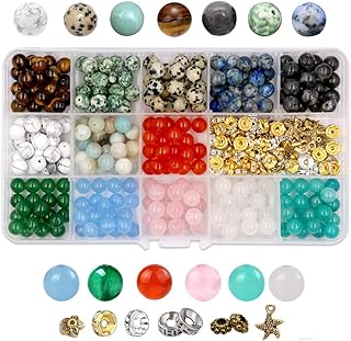 Potosala 260pcs 8mm Perles de pierres précieuses naturelles Perles de quartz Howlite Perles Perles en vrac naturelles 115pcs Pandents avec chaîne de cristal pour la fabrication de bijoux Fournitures