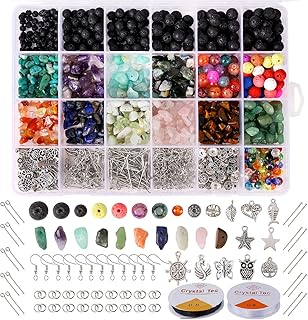 Hongyans 1068 Pièces Kit de Fabrication de Bijoux Bricolage Perles de Pierre de Lave Perles de Pierres Précieuses à Puce Naturel Irrégulières Perles en Vrac Énergie Pierre pour DIY Collier Bracelet