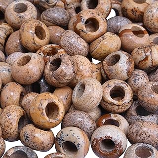 KYEYGWO Picture Jasper Rondes Perles avec Gros Trou en Vrac, Guérison Chakra Pierres Perles Naturelles pour Fabrication de Bijoux Bracelet Collier Bricolage, Lot de 20 Pcs