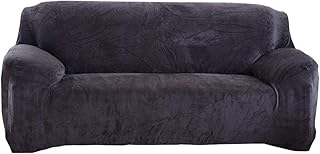 Monba Housses de canapé souples 1/2/3/4 places Protection pour canapé Easy Fit Velvet Housse de canapé en tissu extensible épaisse,Gris foncé, 3 Seater:195-230cm