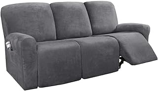 Hellay Housses De Canapé Inclinables 8 PièCes Housses De Canapé Inclinables en Velours Extensible pour 3 Housses De Canapé Coussin Housses De Meubles éPaisses Et Lavables-Gris