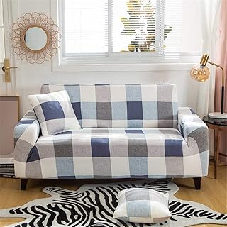Treer Housses de Canapé Extensible, 1 2 3 4 Places Stretch Housse de Fauteuil Universel Revêtement de Canapé avec Accoudoirs Couvre Canapé Maison Décor (Plaid Bleu,4 Places(235-300cm))