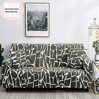 Treer Housses de Canapé Extensible, Universel 1/2/3/4 Places Housse de Fauteuil Stretch Revêtement de Canapé Maison Couvre Décor avec Accoudoirs Blanc Tesson Impression (Gris foncé,3 Places)