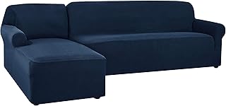 TopcHANCES Lot de 2 housses de canapé modernes en tissu polyester extensible avec housses de coussin d’assise séparées (3 places, bleu foncé)