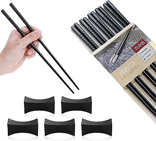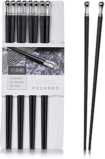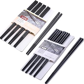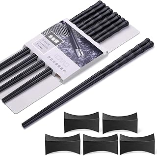Haosell Lot de 5 paires de baguettes + 5 baguettes japonaises Chopsticks Noir Baguettes chinoises en alliage pour vaisselle Asiatique Réutilisables et lavables