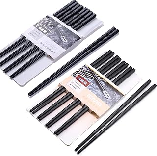 Haosell Lot de 10 paires de baguettes chinoises japonaises noires en alliage pour vaisselle asiatique - Réutilisables - Lavables pour lave-vaisselle (aw01)