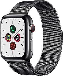 Apple Watch Series 5 (GPS + Cellular, 44 mm) Boîtier en Acier Inoxydable - Bracelet Milanais
