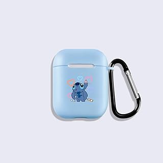 Léger Coque Étui Housse for AirPods 1&2 Antichoc avec Coque en Silicone Protecteur pour Airpods Apple Convient aux Filles garçons Air pods Mignon Silicone Souple Animé Love Amour Rose et Bleu Cas